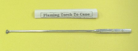 You receive the correctly constructed aluminum torch with a cotton filled tank on top. Provisions are there to allow you to attach this to the ferrule of any standard steel appearing cane. Plastic canes are not suitable for this effect.