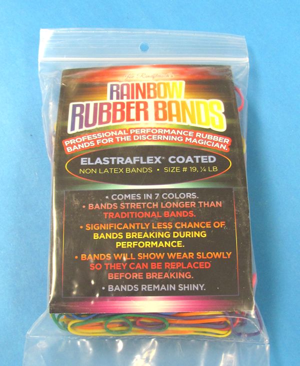 The Rainbow Pack is the perfect choice with all seven colors included in each bag. Each band is coated with Elastraflex which makes the bands stronger and less likely to break during performance. Bands are able to stretch further than normal bands and continue to stay shiny. These bands are smooth to the touch and don’t feel like rubber as they slide smoothly against each other. Simply put…… if you do rubber band magic, you need these bands!