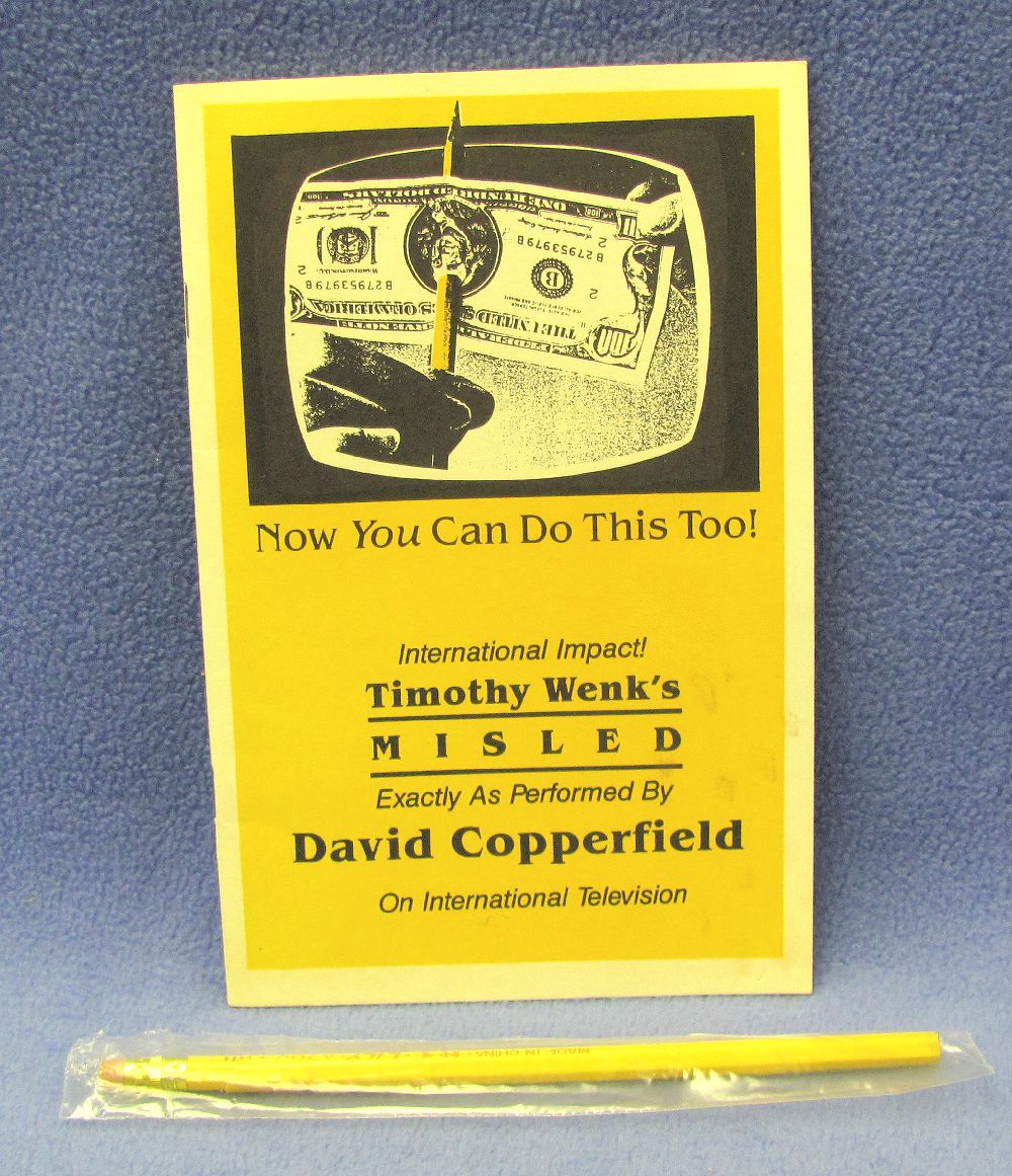 This came from a magician’s estate. The detailed instructional booklet is very good with a few marks on the front cover. It comes with one new (never removed from its plastic wrapper) pencil and gimmick.